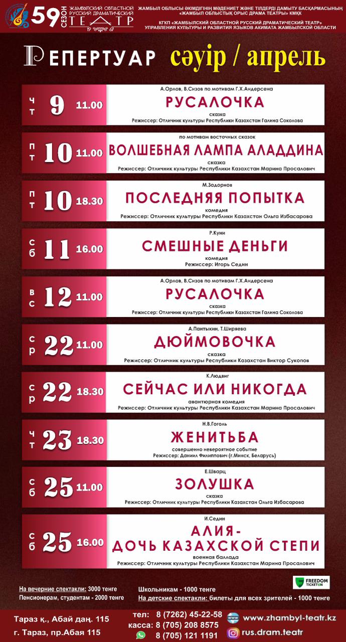 Вечерние спектакли - 3000 тг.